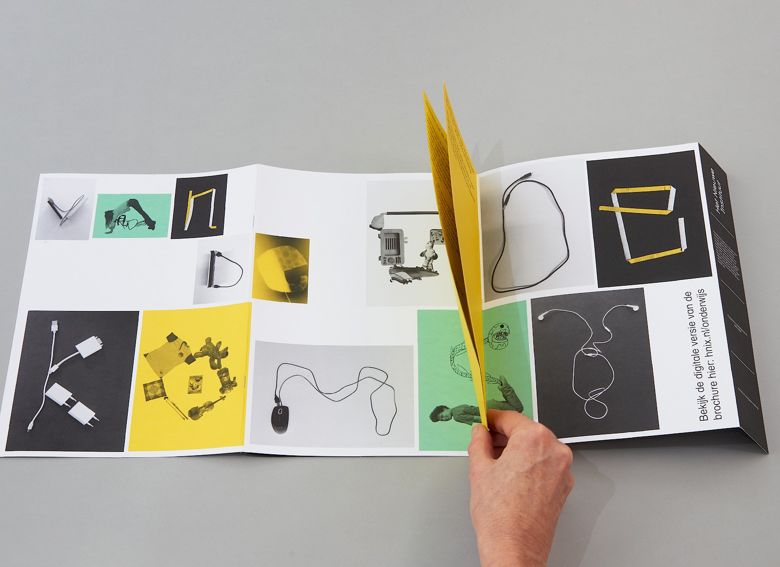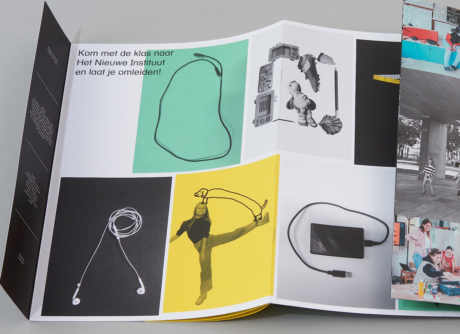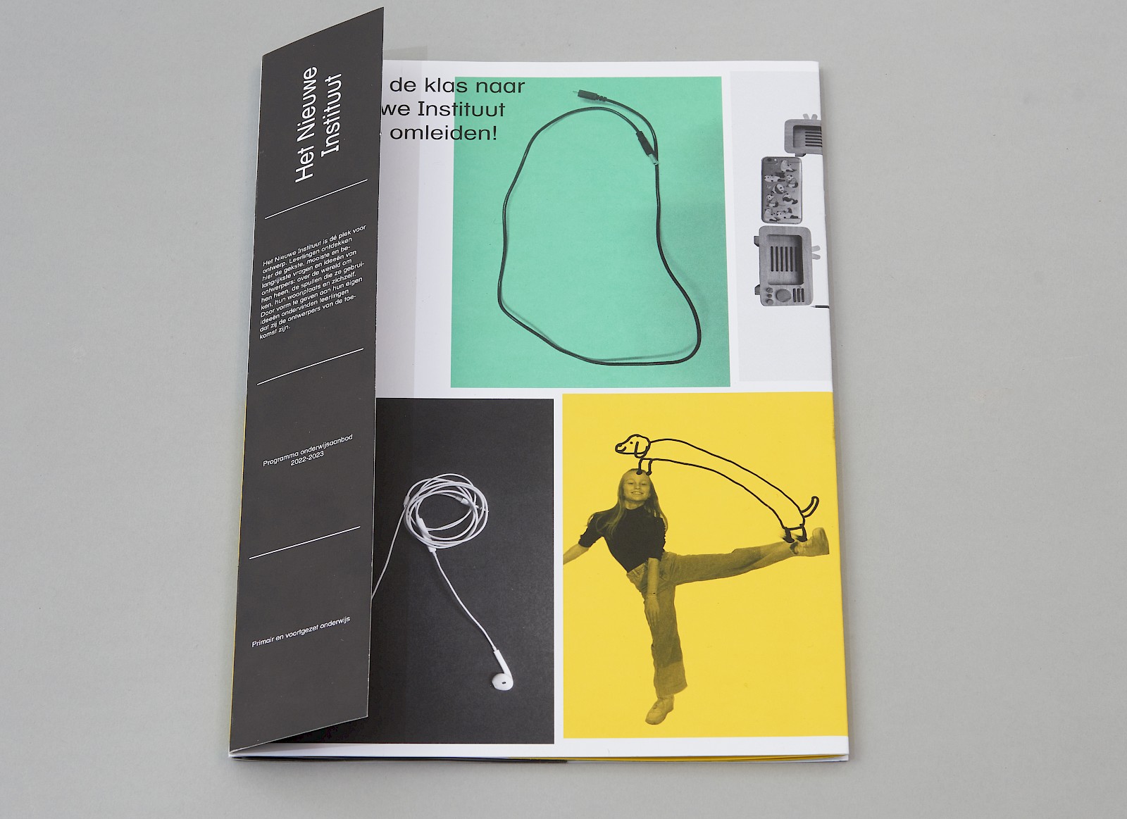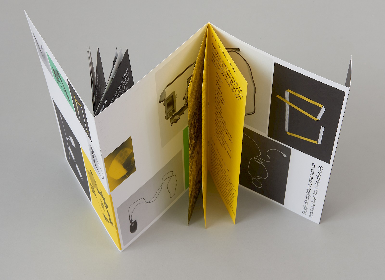 De onderwijsfolder bestaat uit een zigzag vorm met in de 'oksels' van de zigzag bevinden zich twee informatie boekjes.