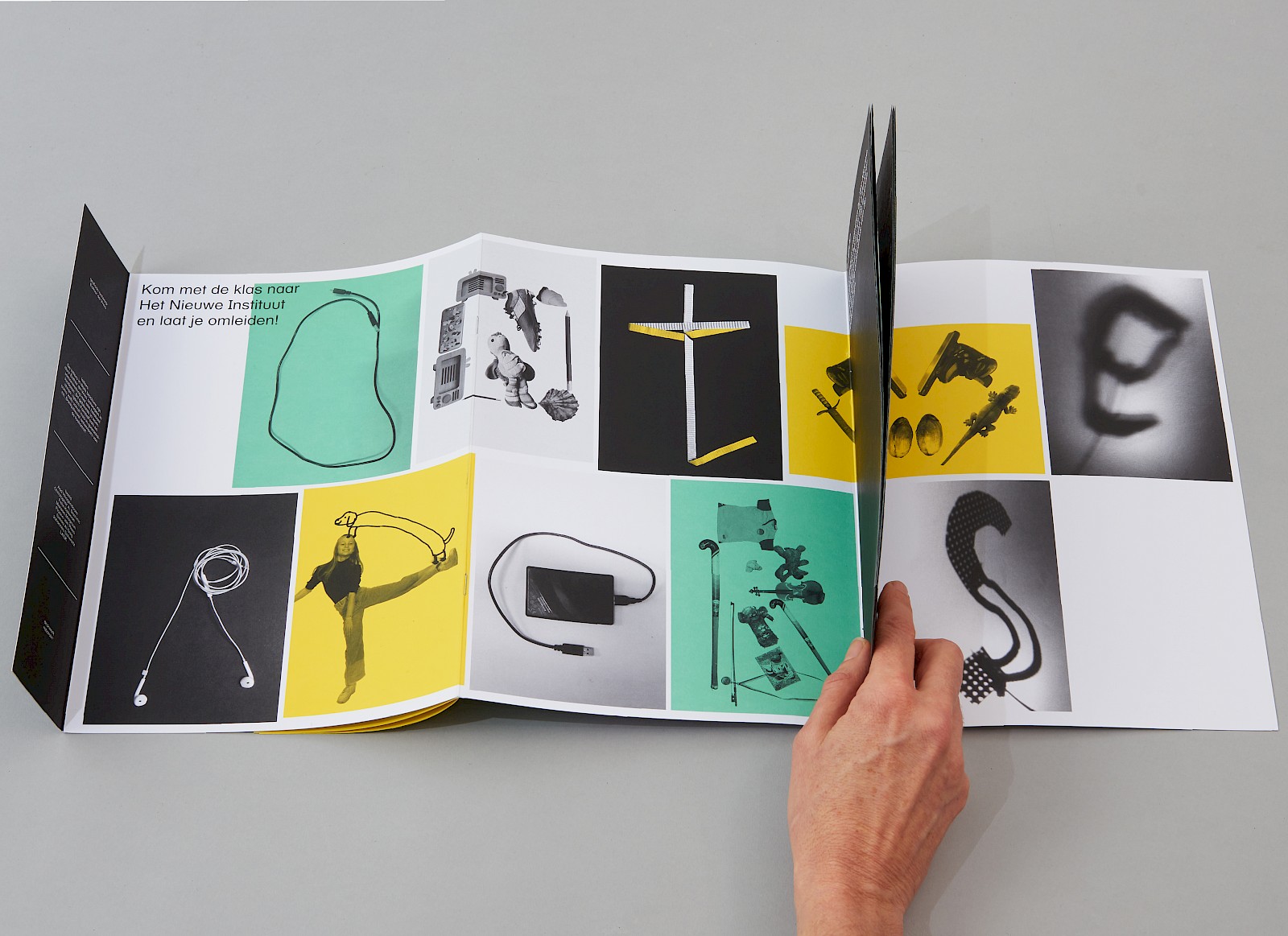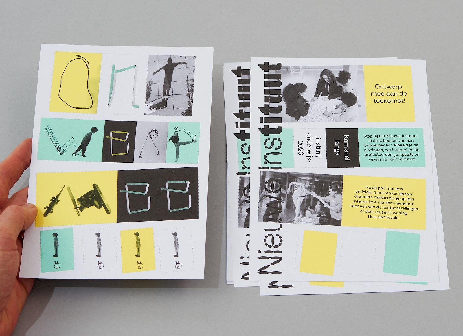 De letters werden vervolgens gebruikt voor uitnodigingen, advertenties, instagram filmpjes, etc. en hier in een onderwijsfolder