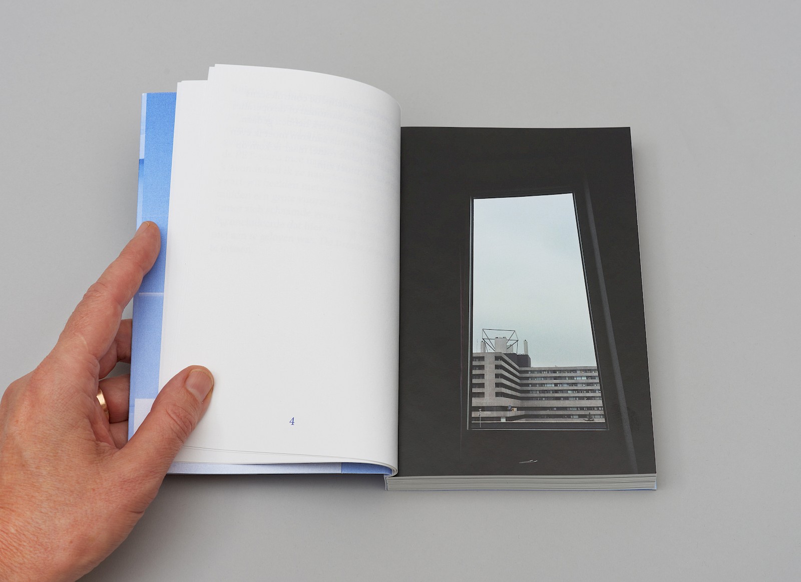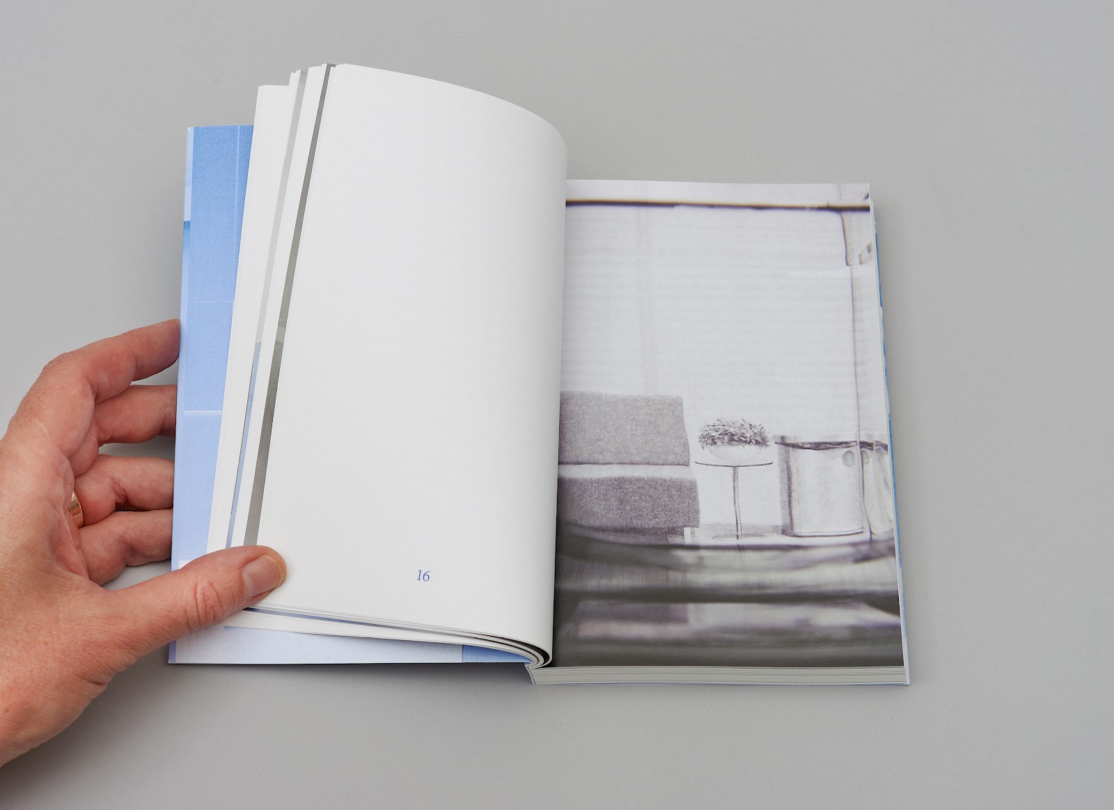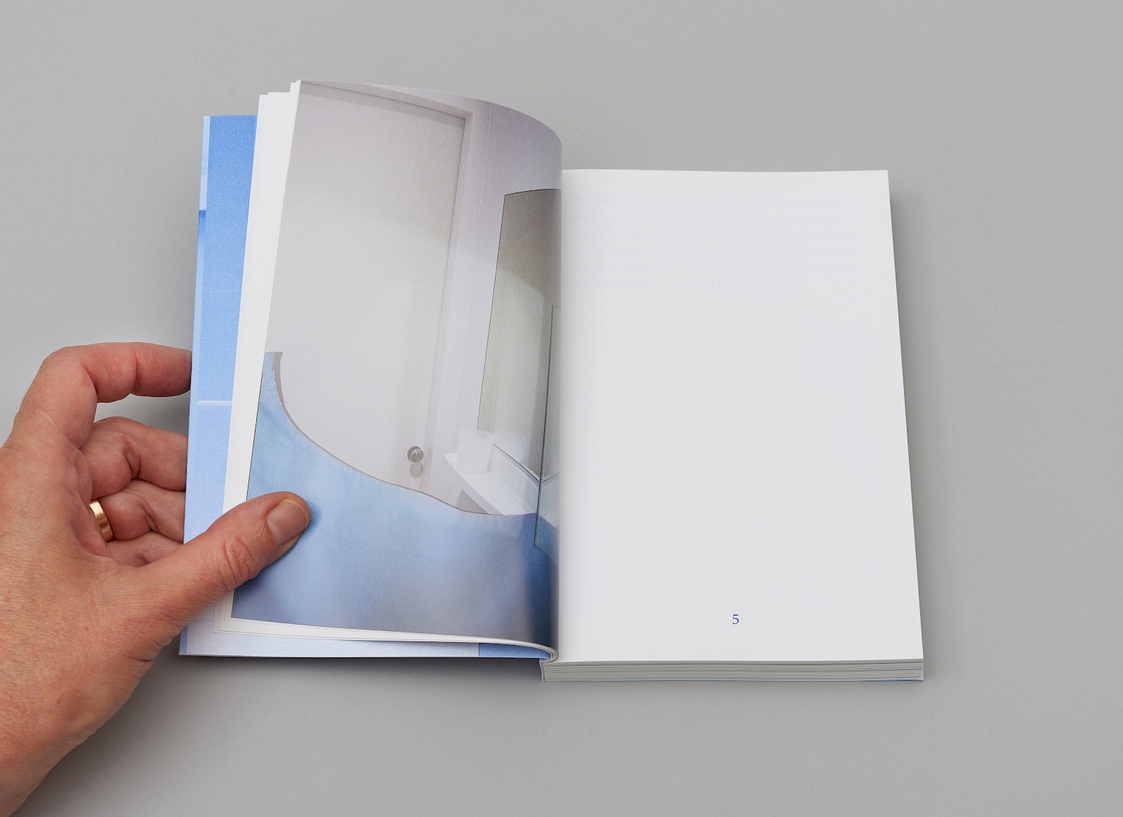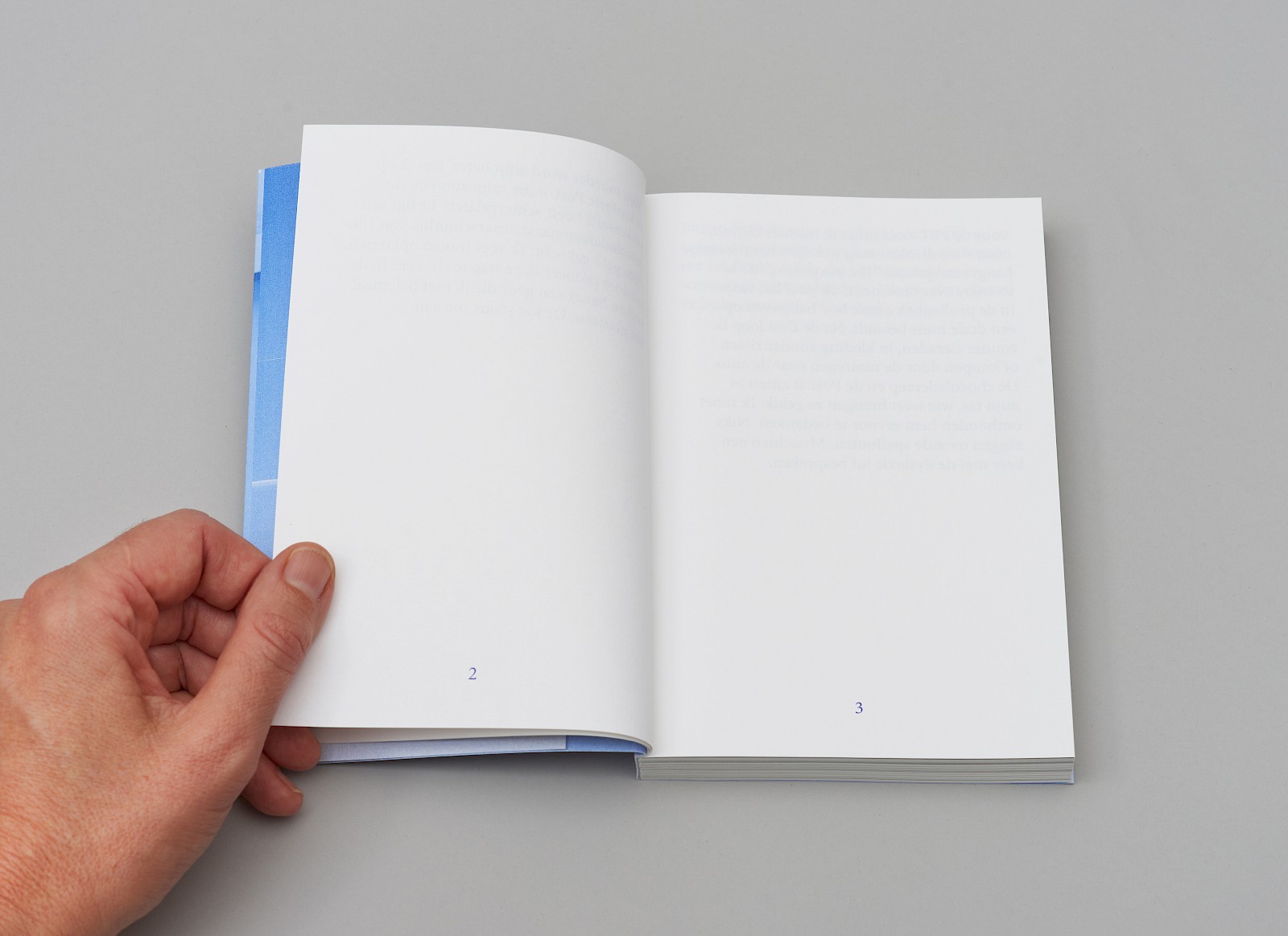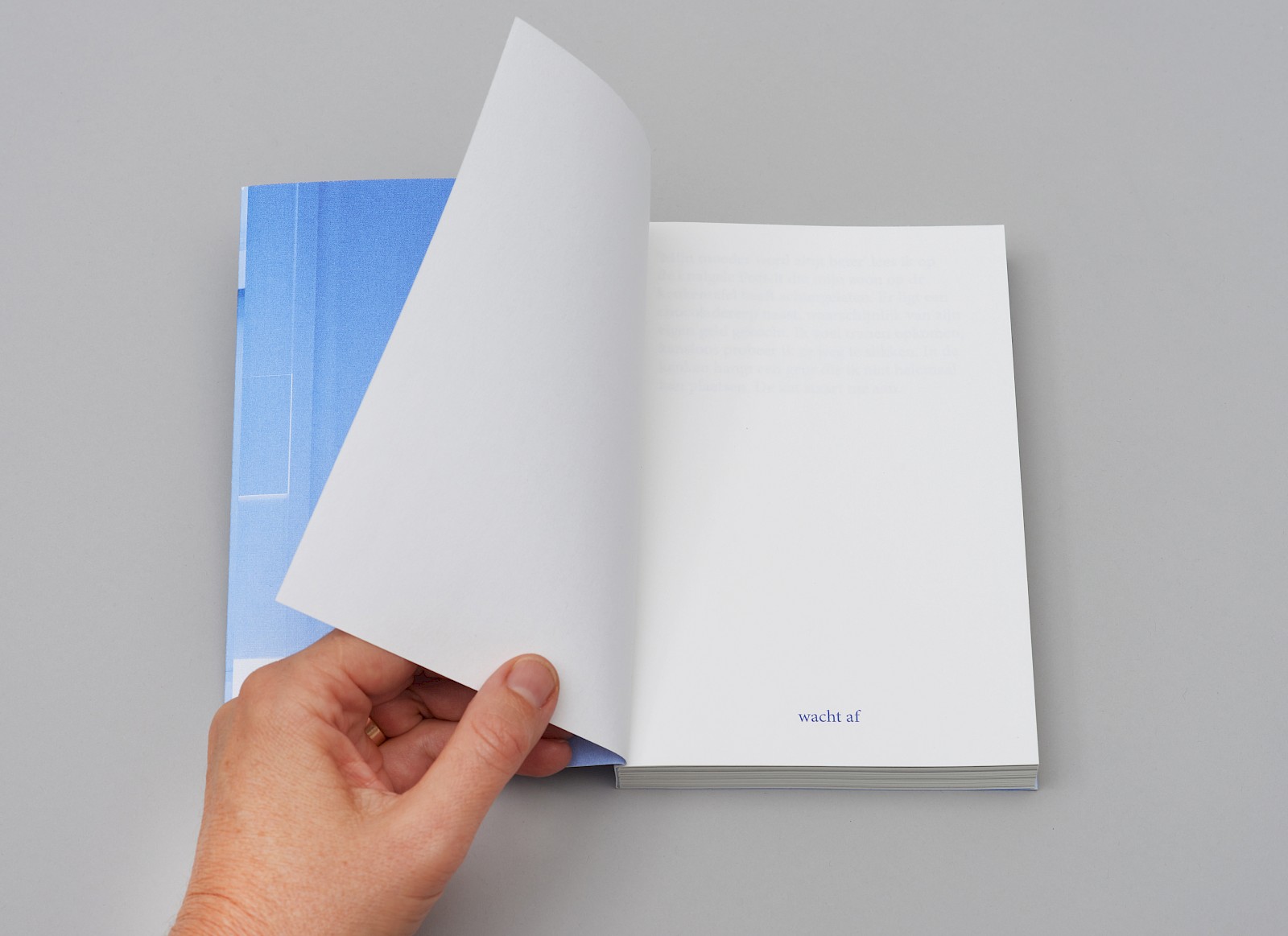 Om de lege pagina’s te benadrukken als ‘inhoud’ werden alleen deze genummerd. Deze ingreep versterkte het het thema ‘wachten’ waar dit boek over gaat.