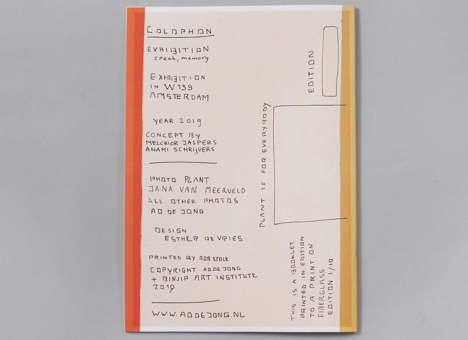 Deze publicatie werd in nauwe samenwerking gemaakt met Ad de Jong voor zijn tentoonstelling in W139.